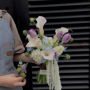 Hoa cưới Calla Lily mix tulip và dạ lan hương A389