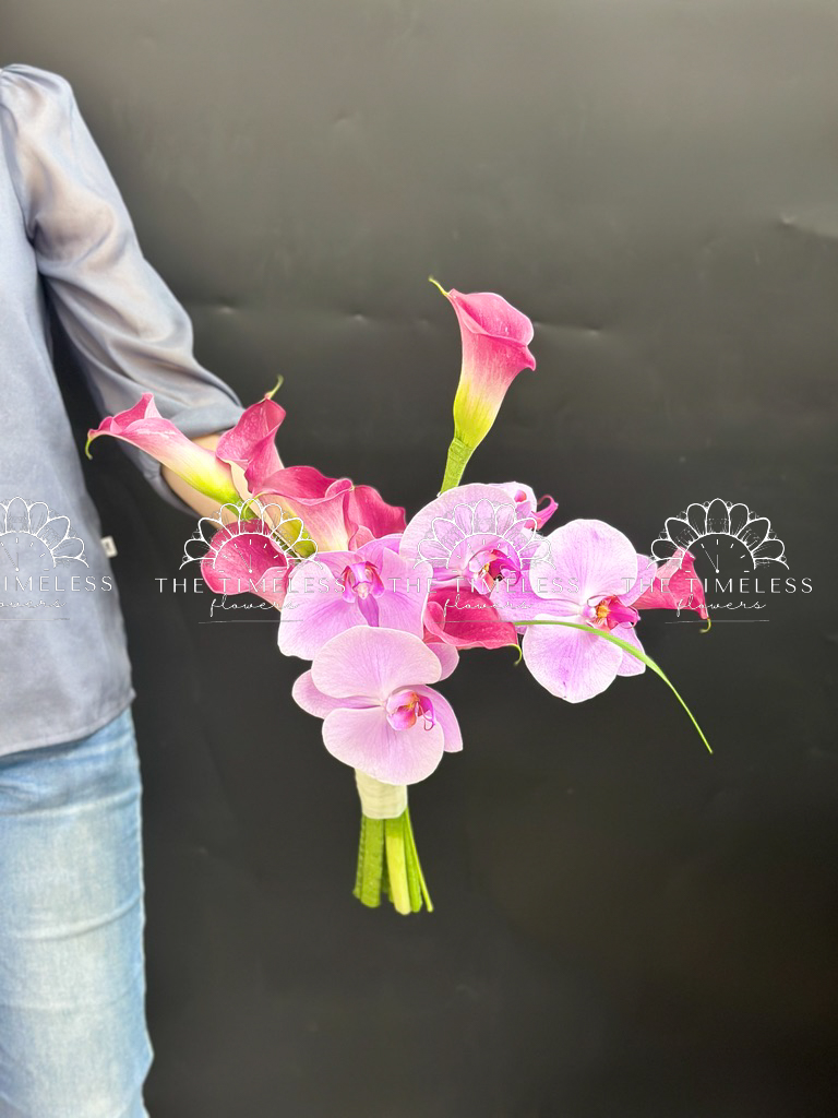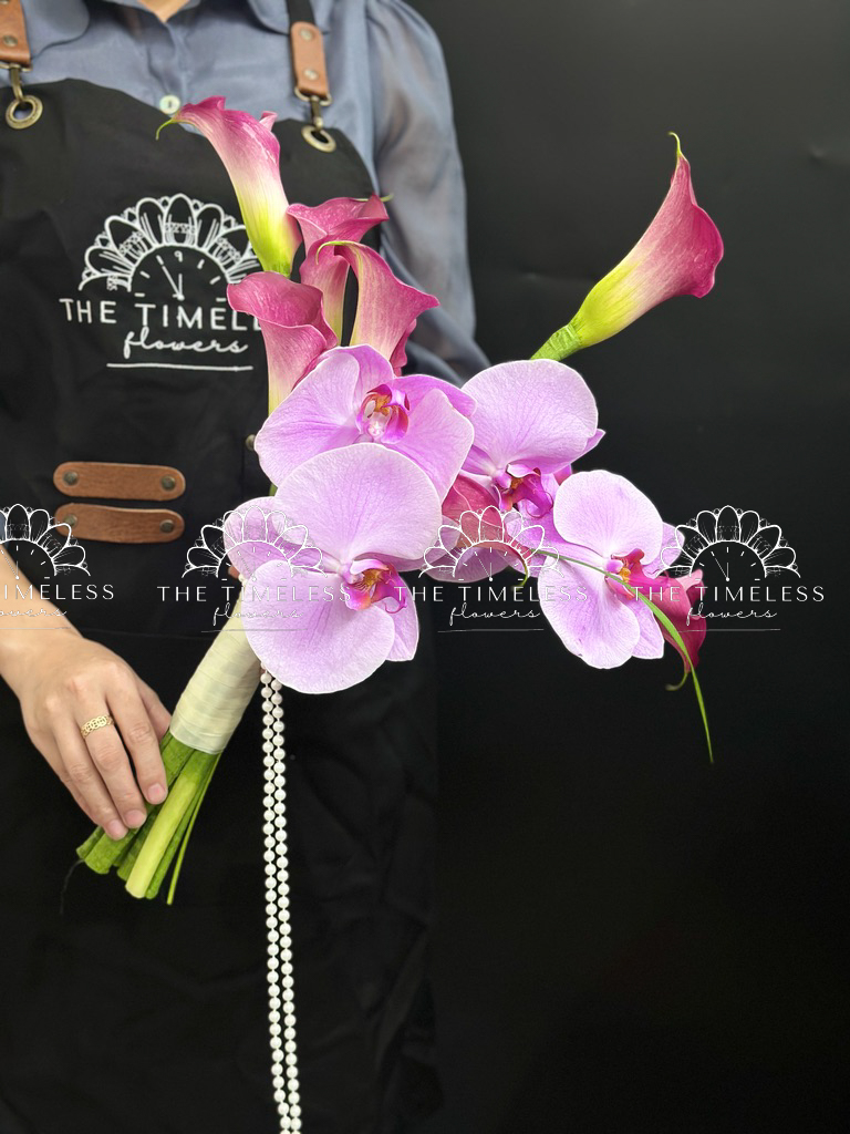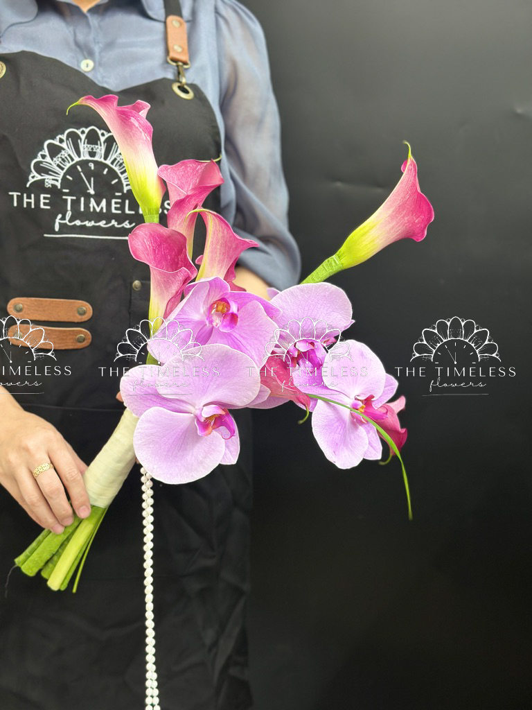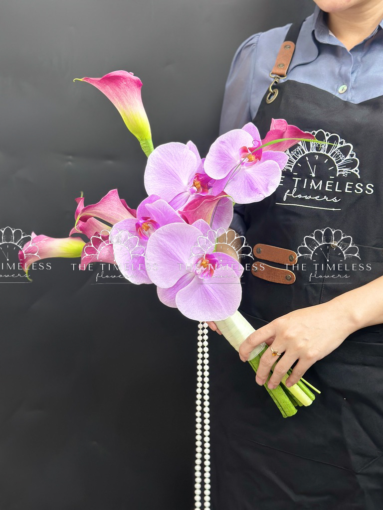 Bó hoa cưới 9 Calla LiLy Hồng Mix Lan Hồ Điệp Hồng A429