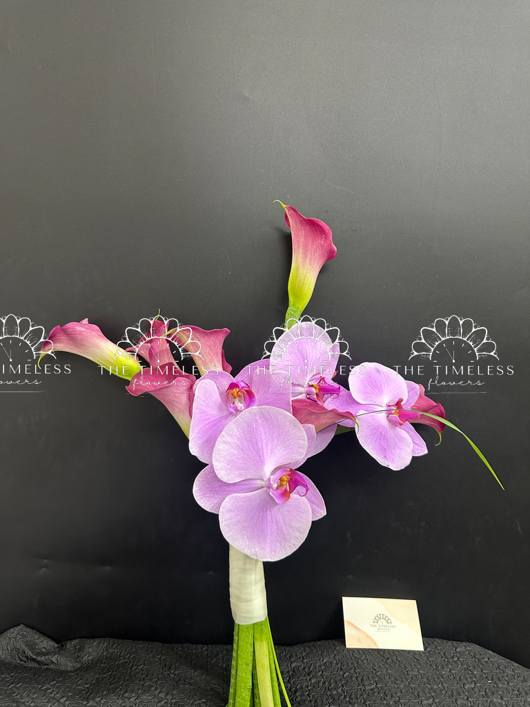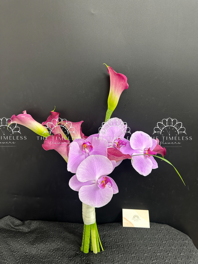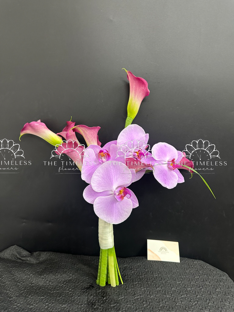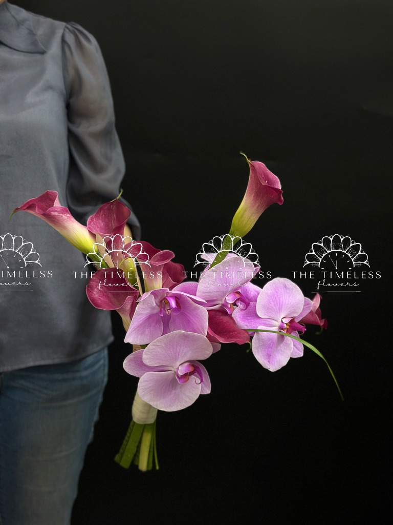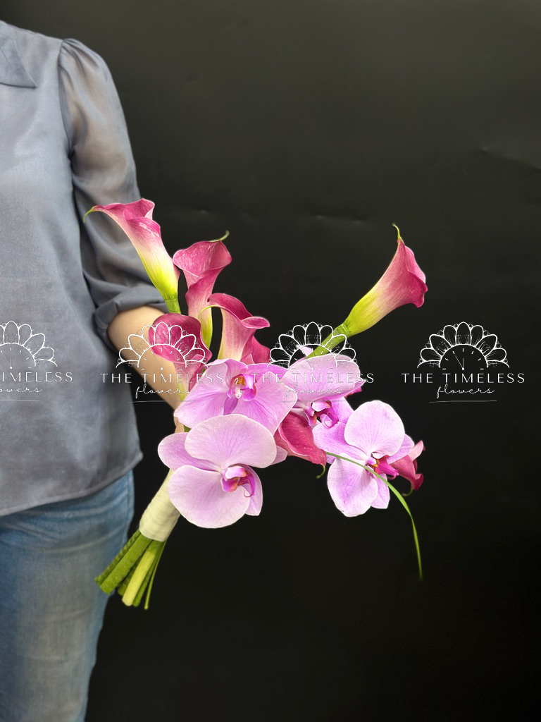 Bó hoa cưới 9 Calla LiLy Hồng Mix Lan Hồ Điệp Hồng A429