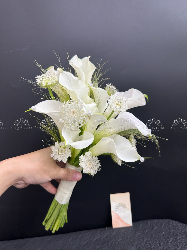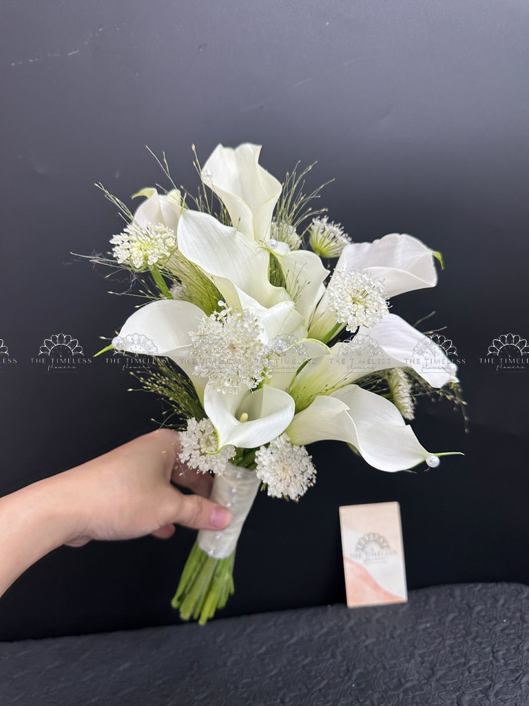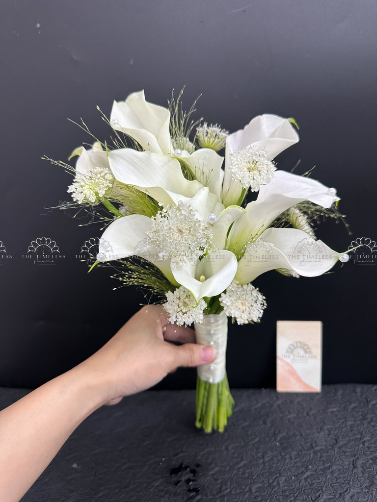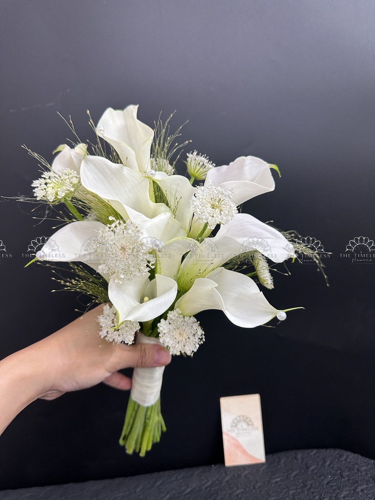 Bó hoa cưới 9 Calla trắng Mix lá Chanh Ý A400