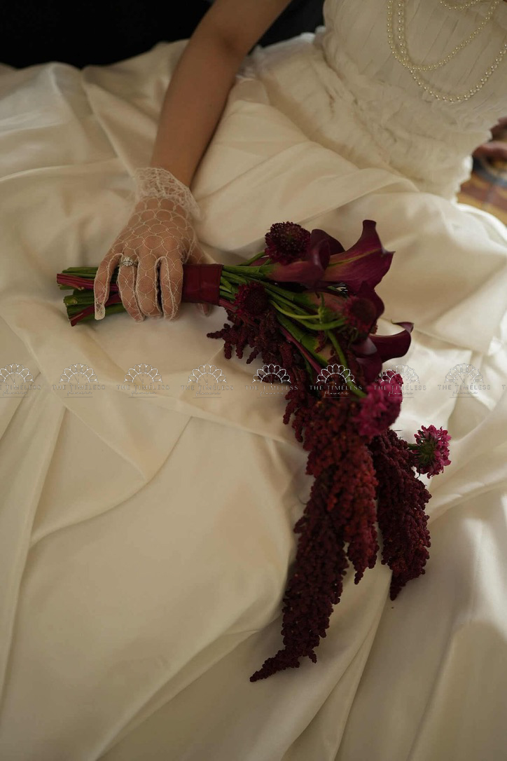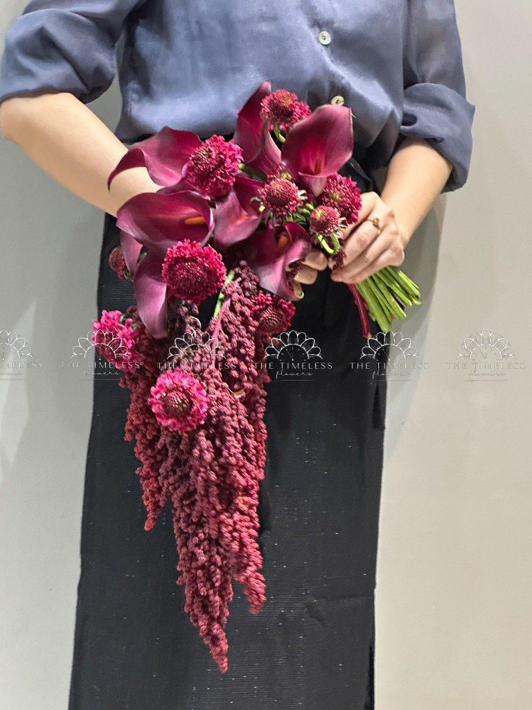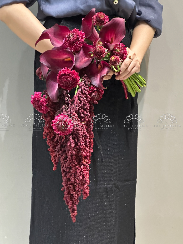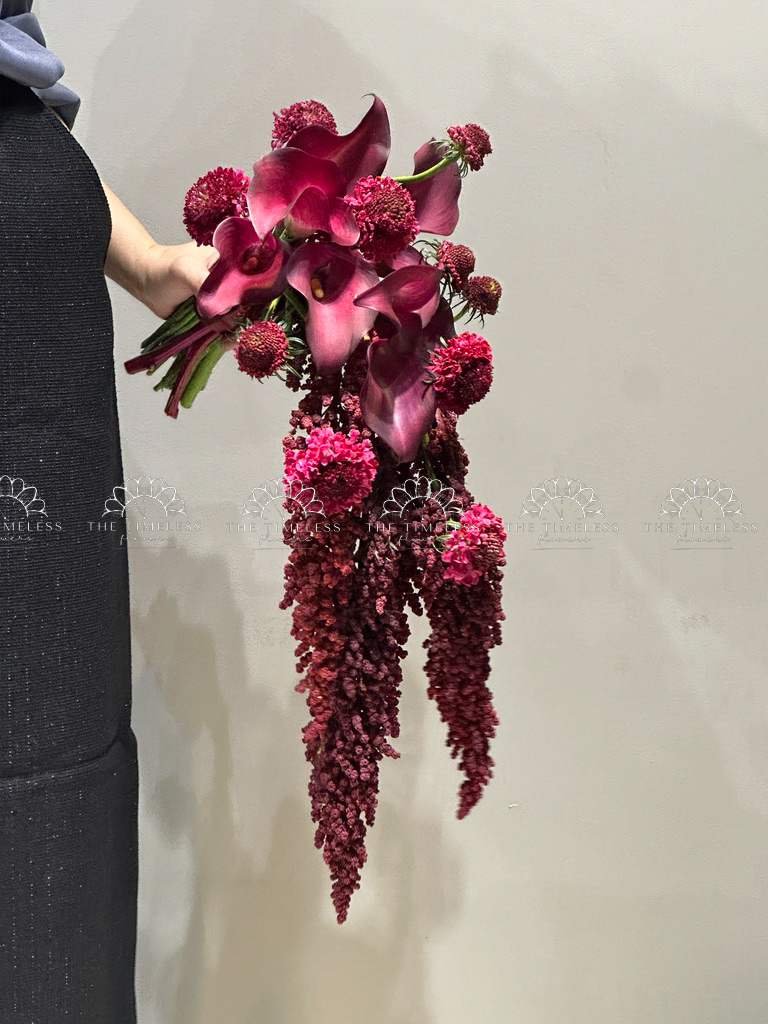 Bó hoa cưới Dáng Thác 9 Calla Lily Đỏ Ruby A409