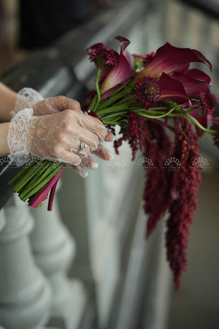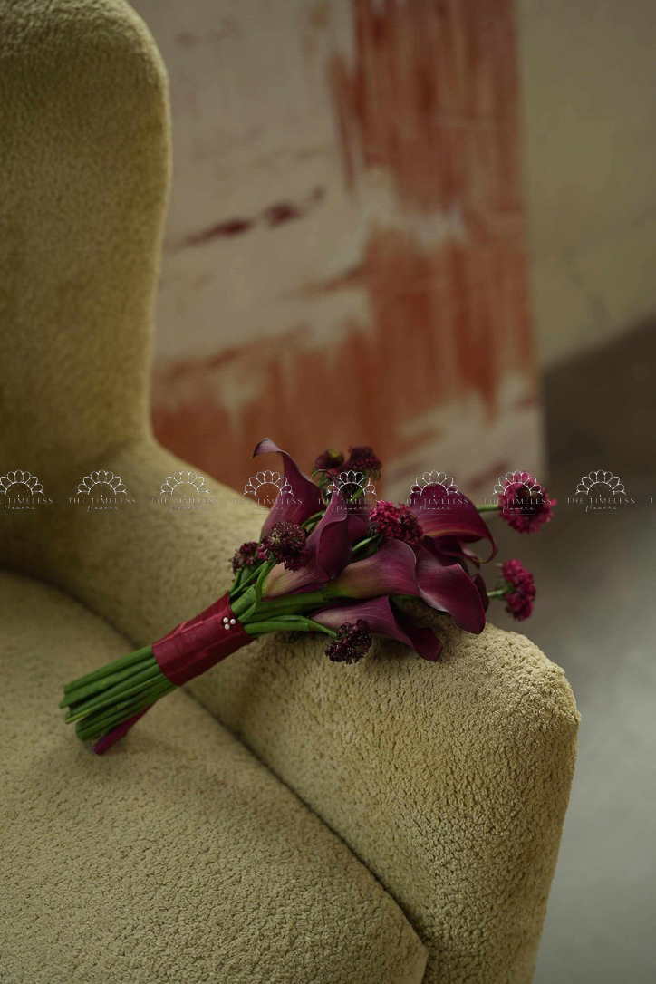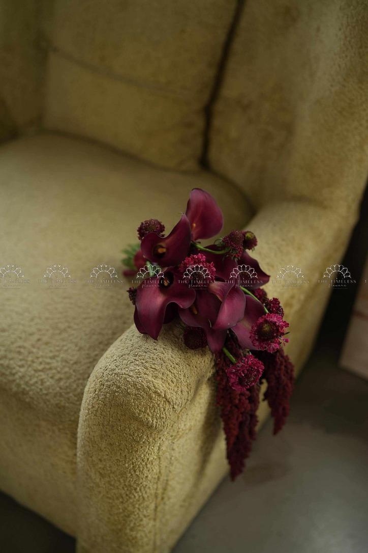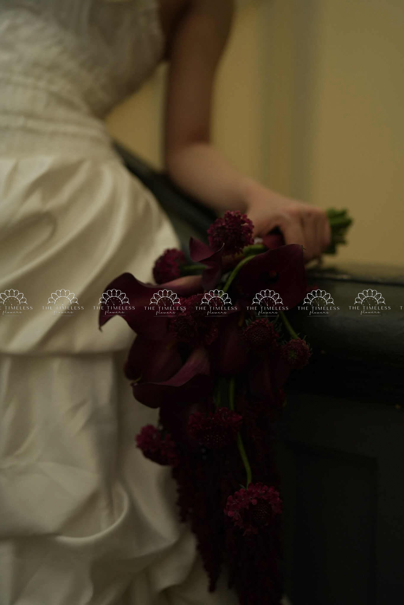 Bó hoa cưới Dáng Thác 9 Calla Lily Đỏ Ruby A409