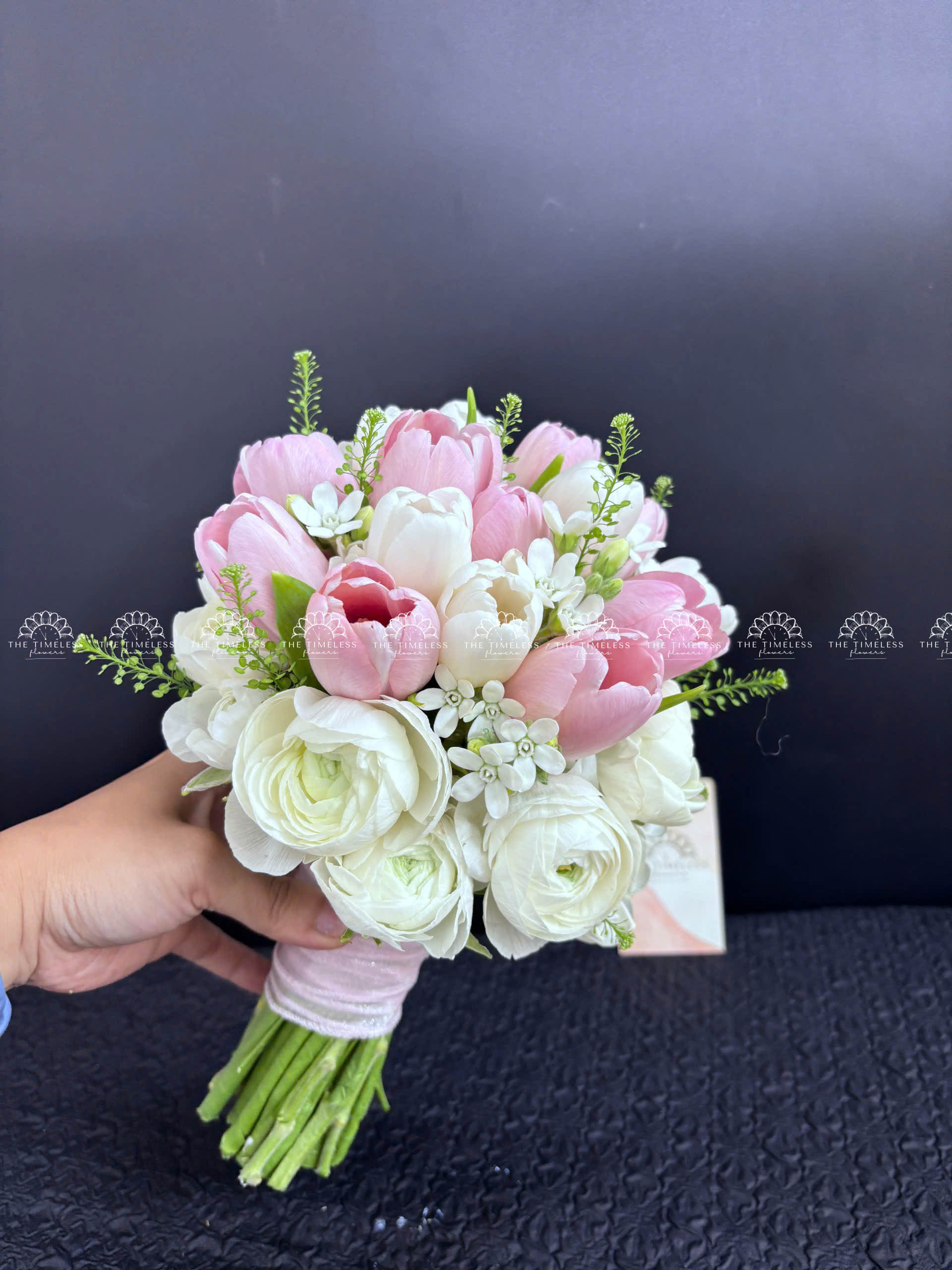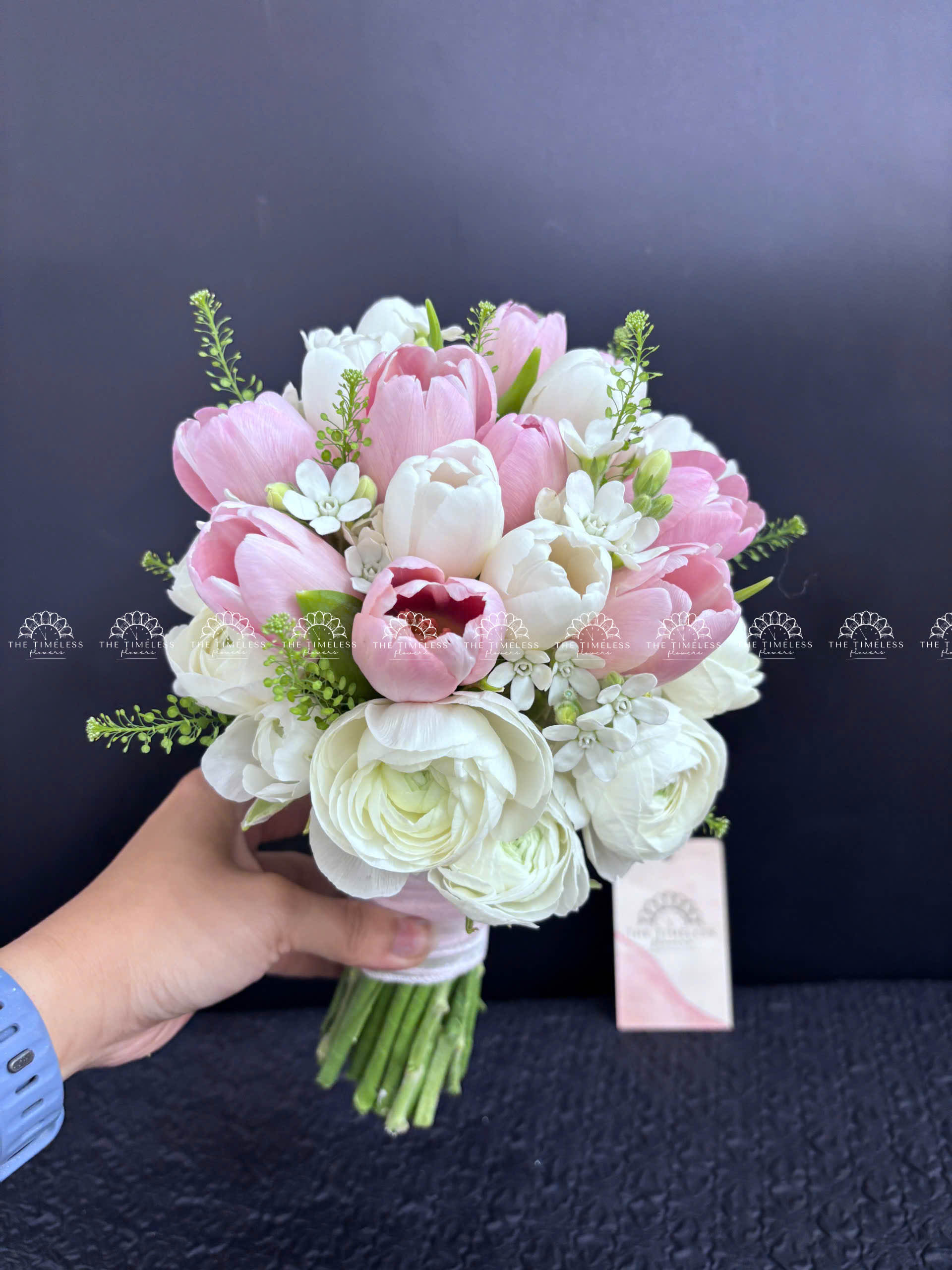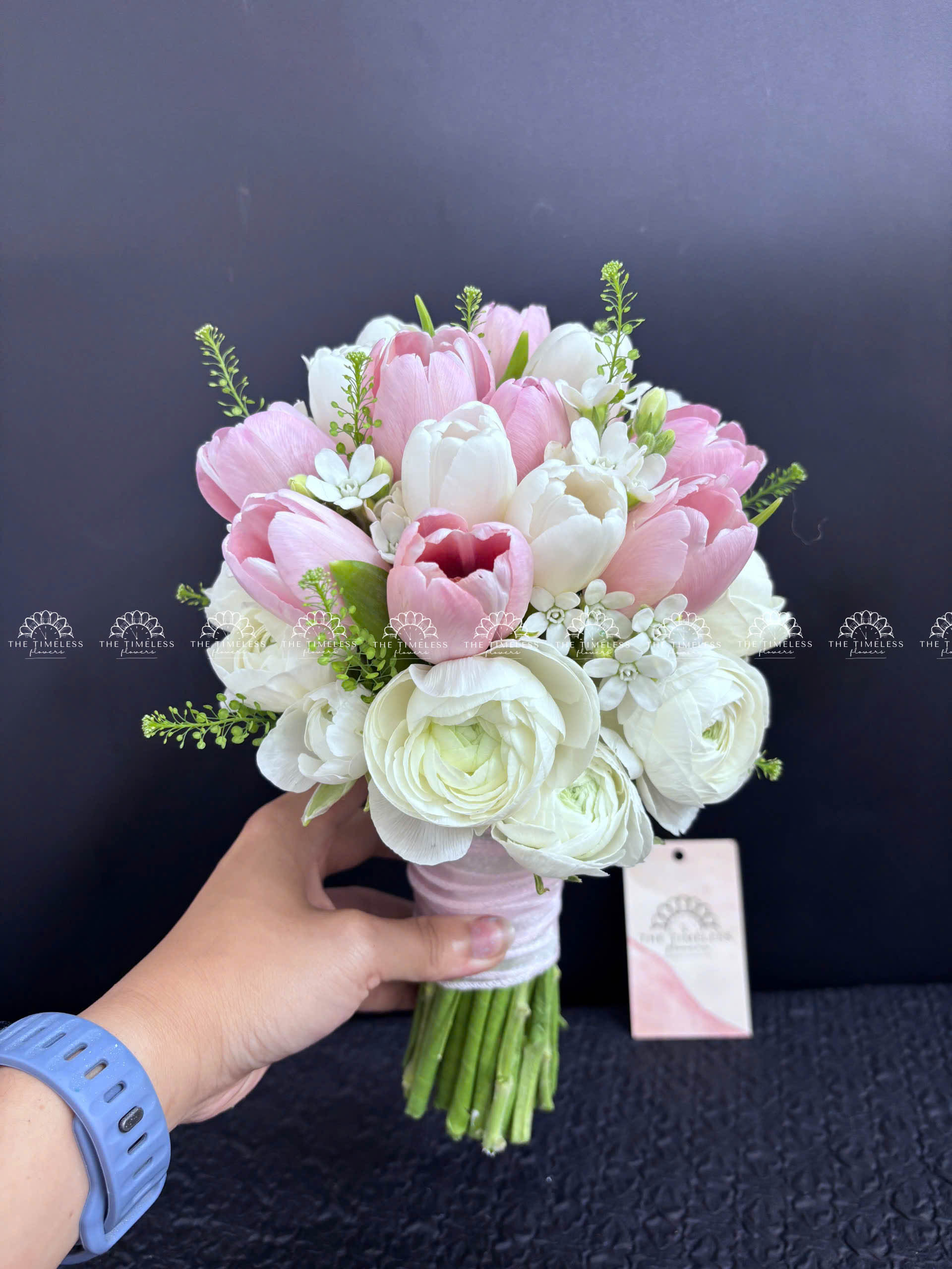 Hoa Cưới 15 tulip Trắng Mix Hồng Mix Mao Lương A342