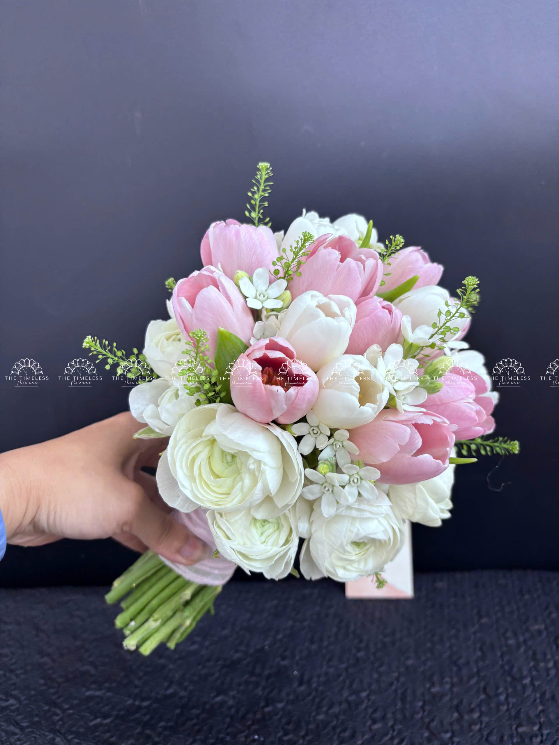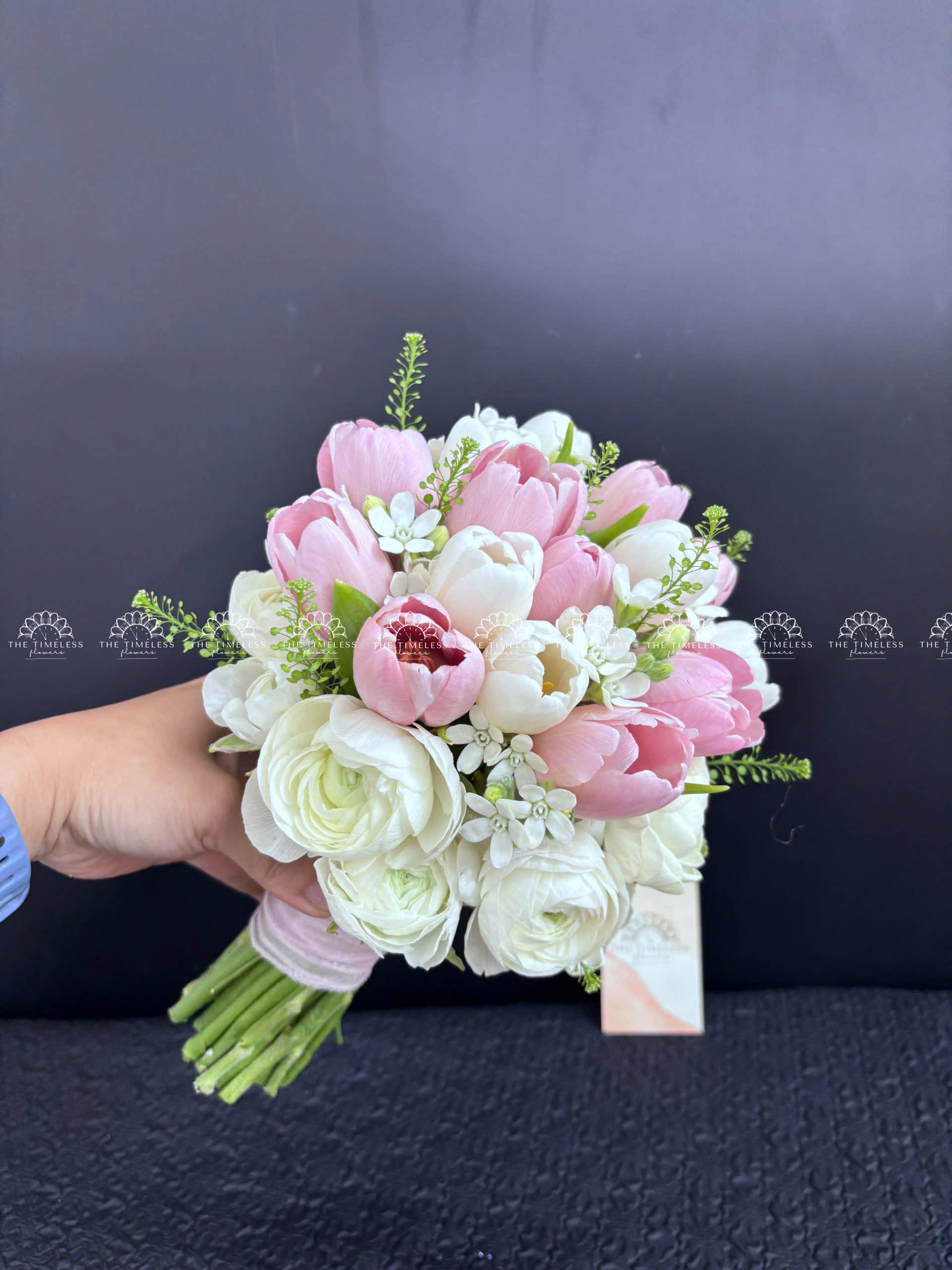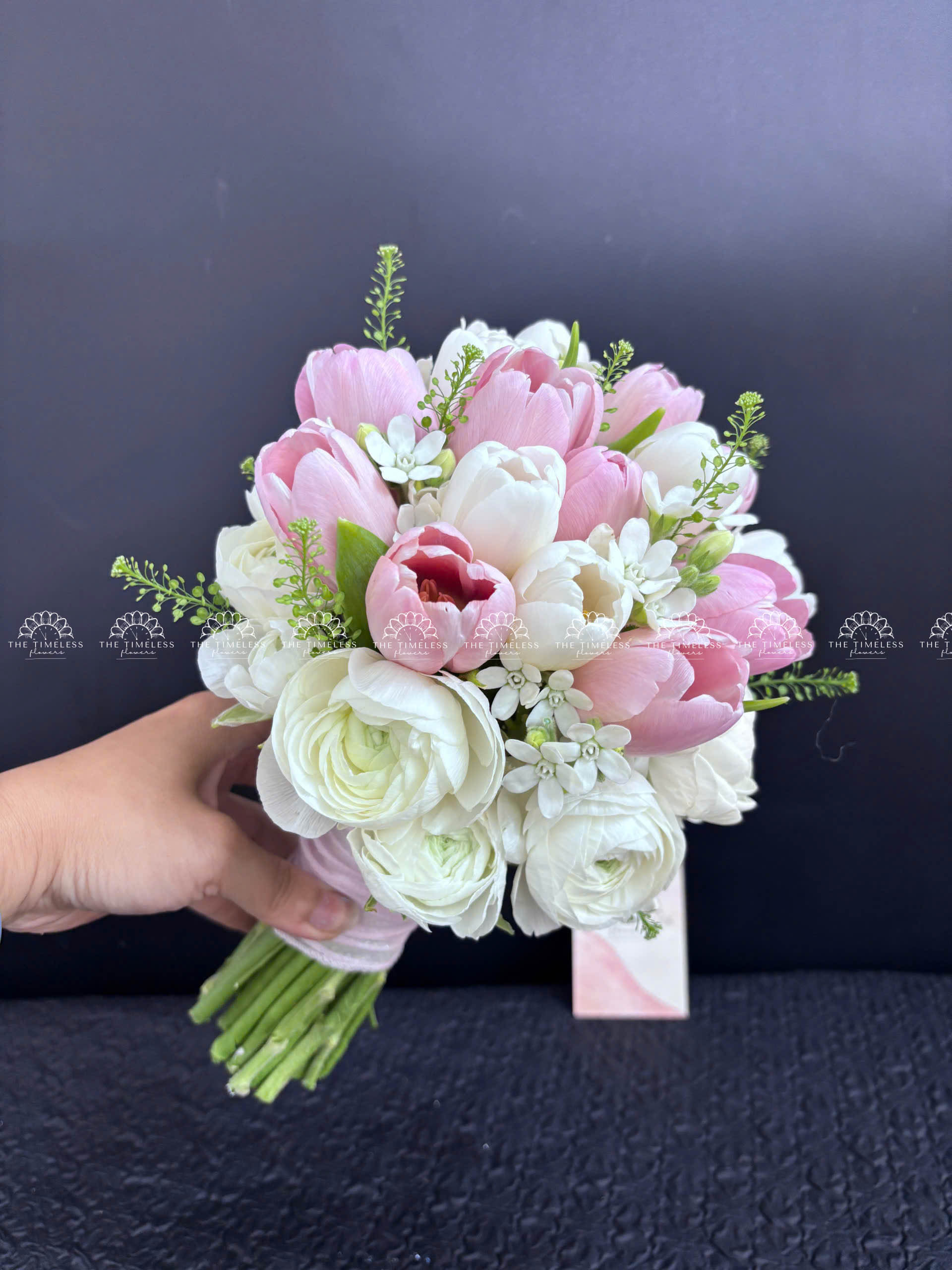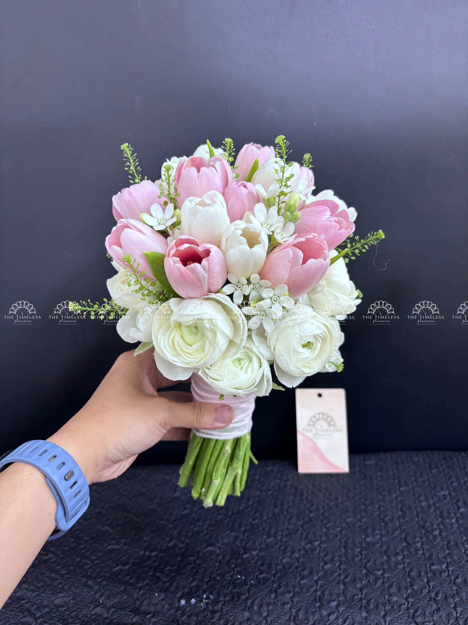 Hoa Cưới 15 tulip Trắng Mix Hồng Mix Mao Lương A342
