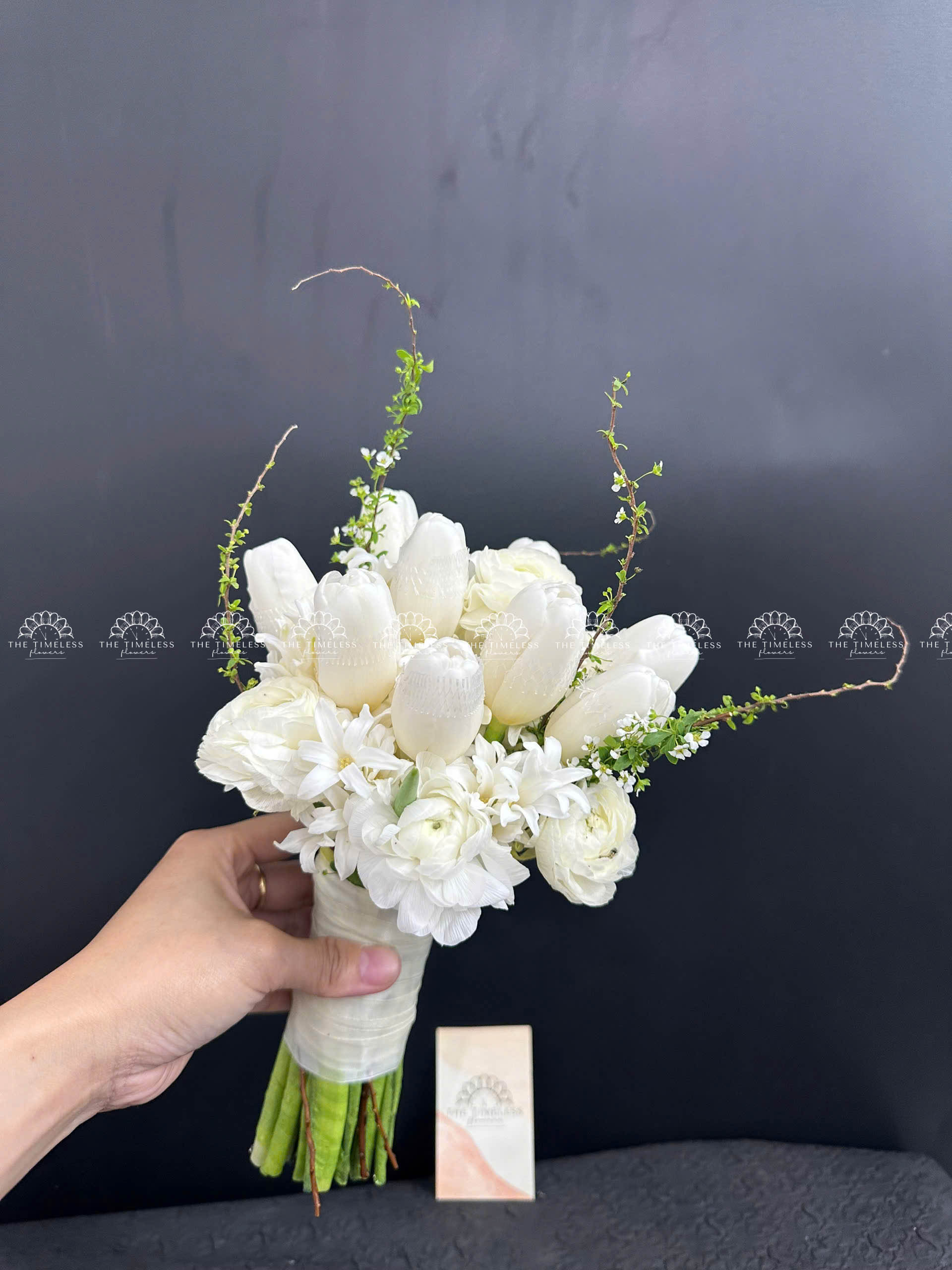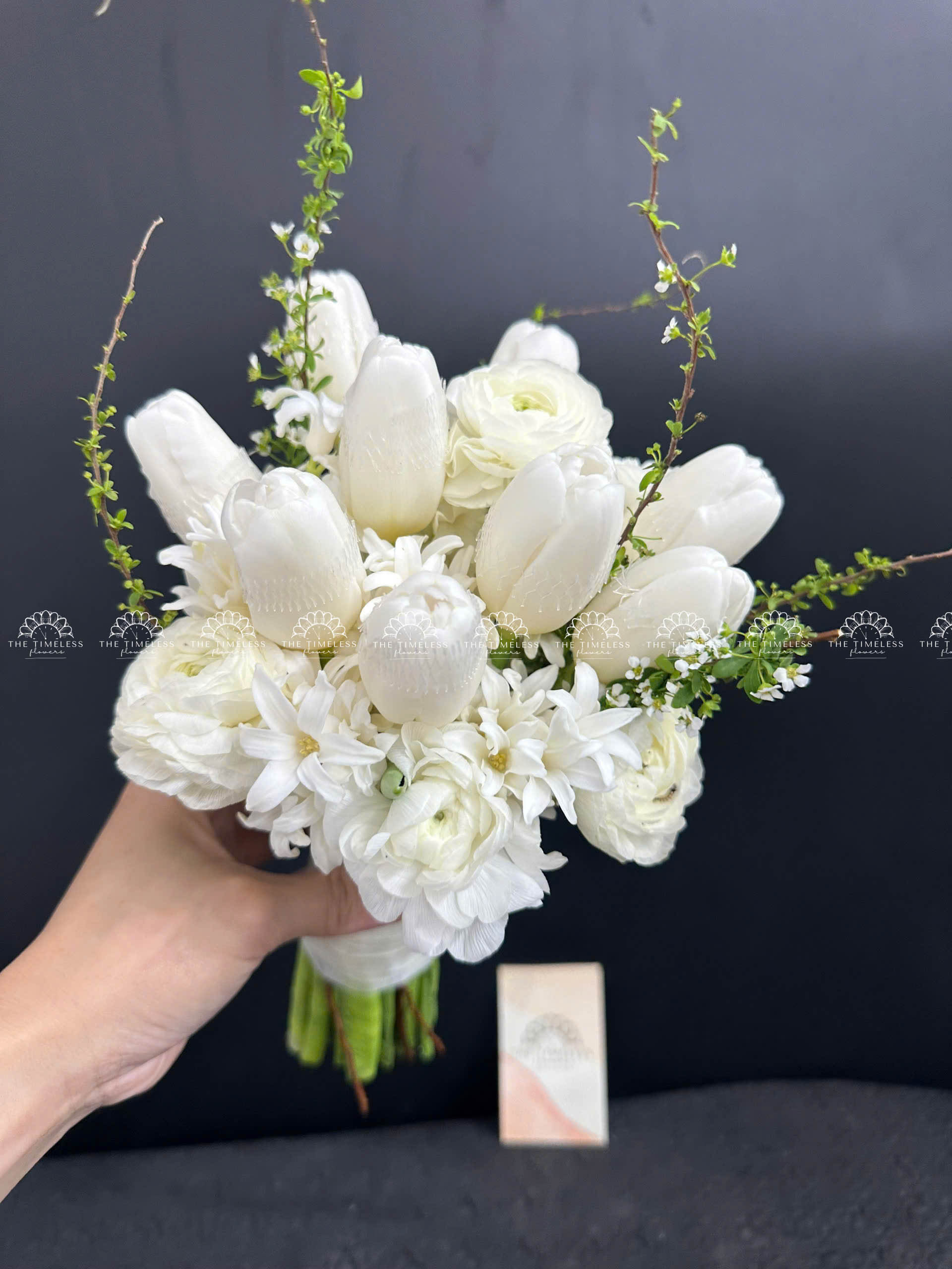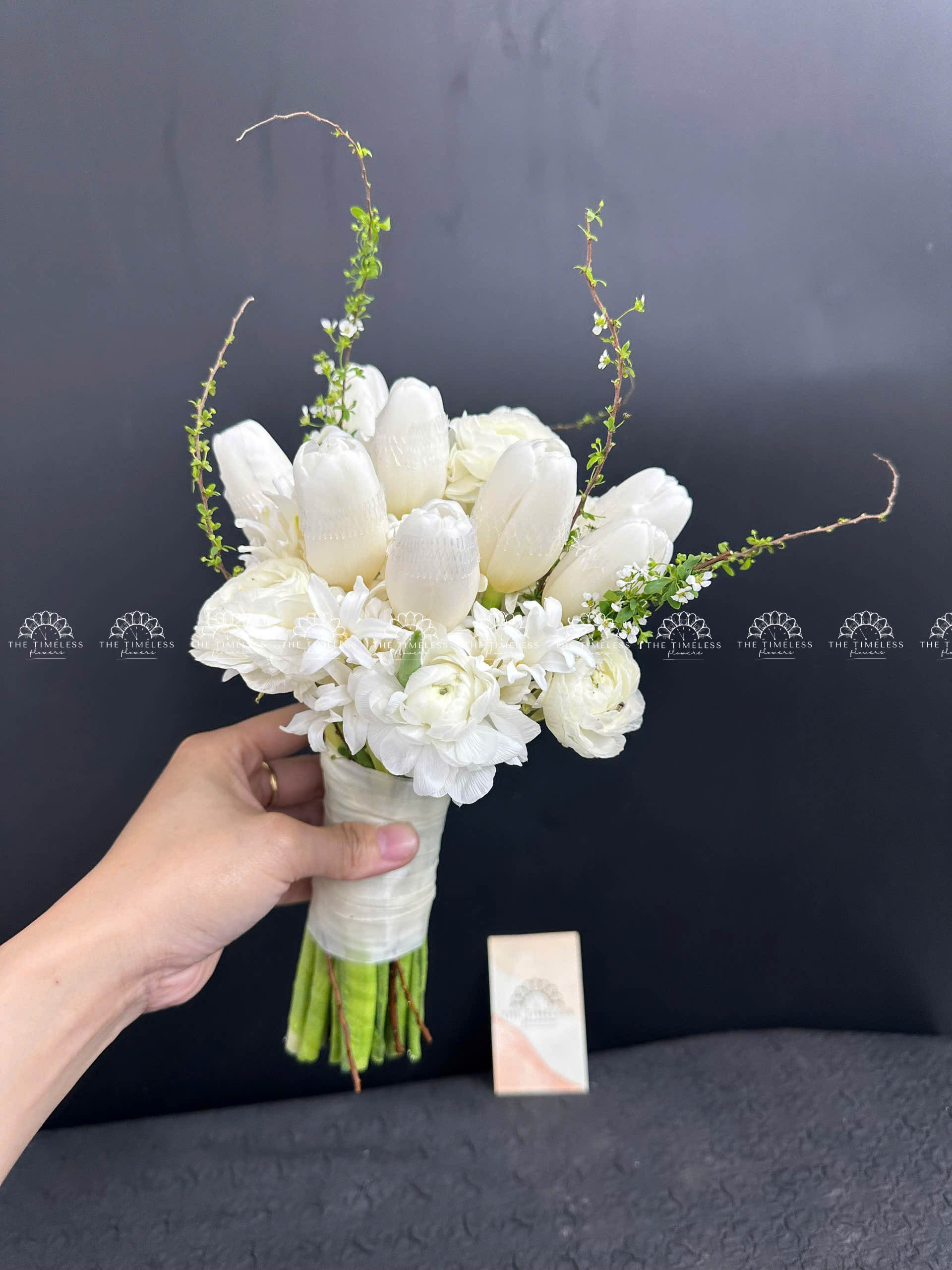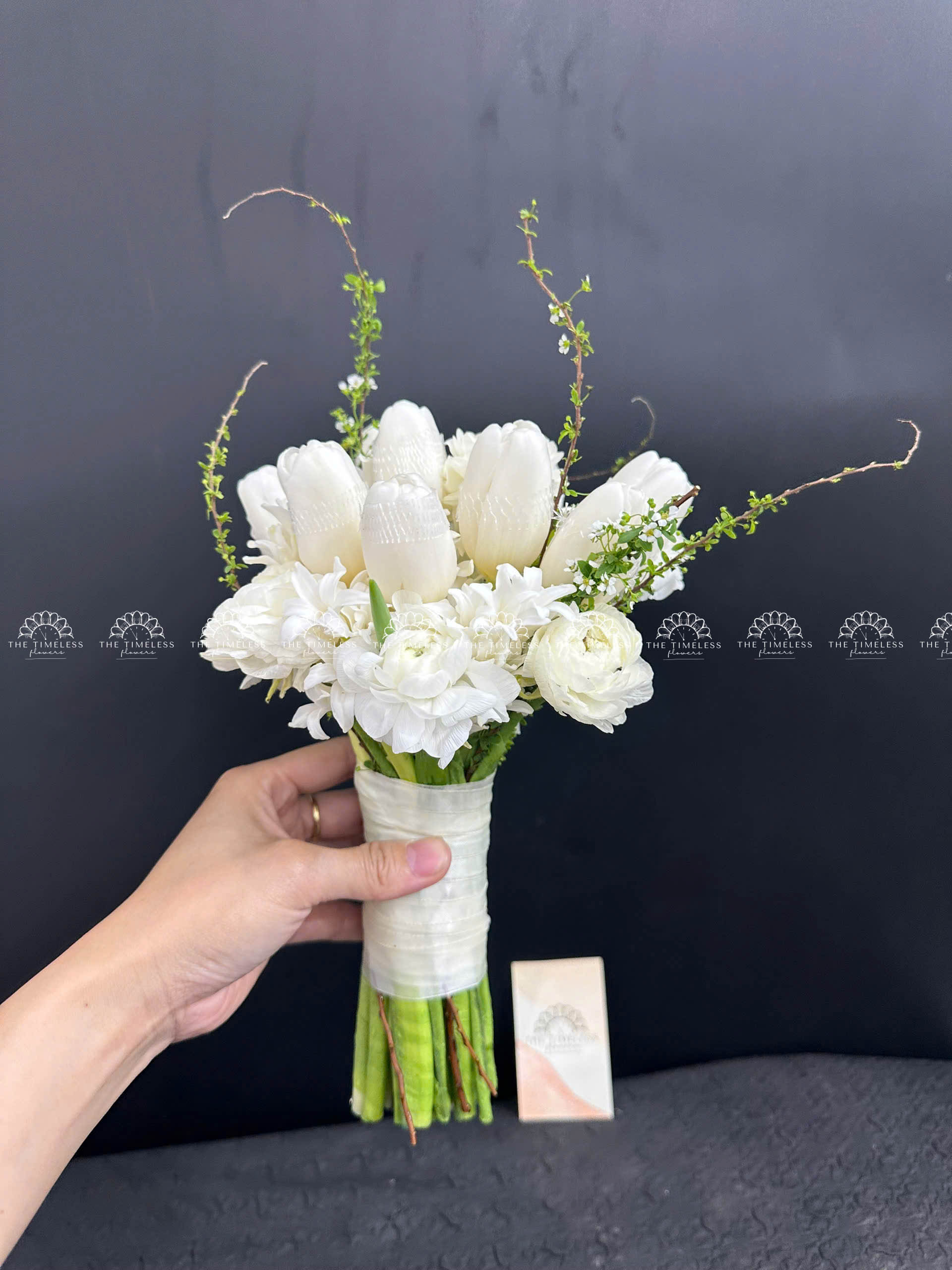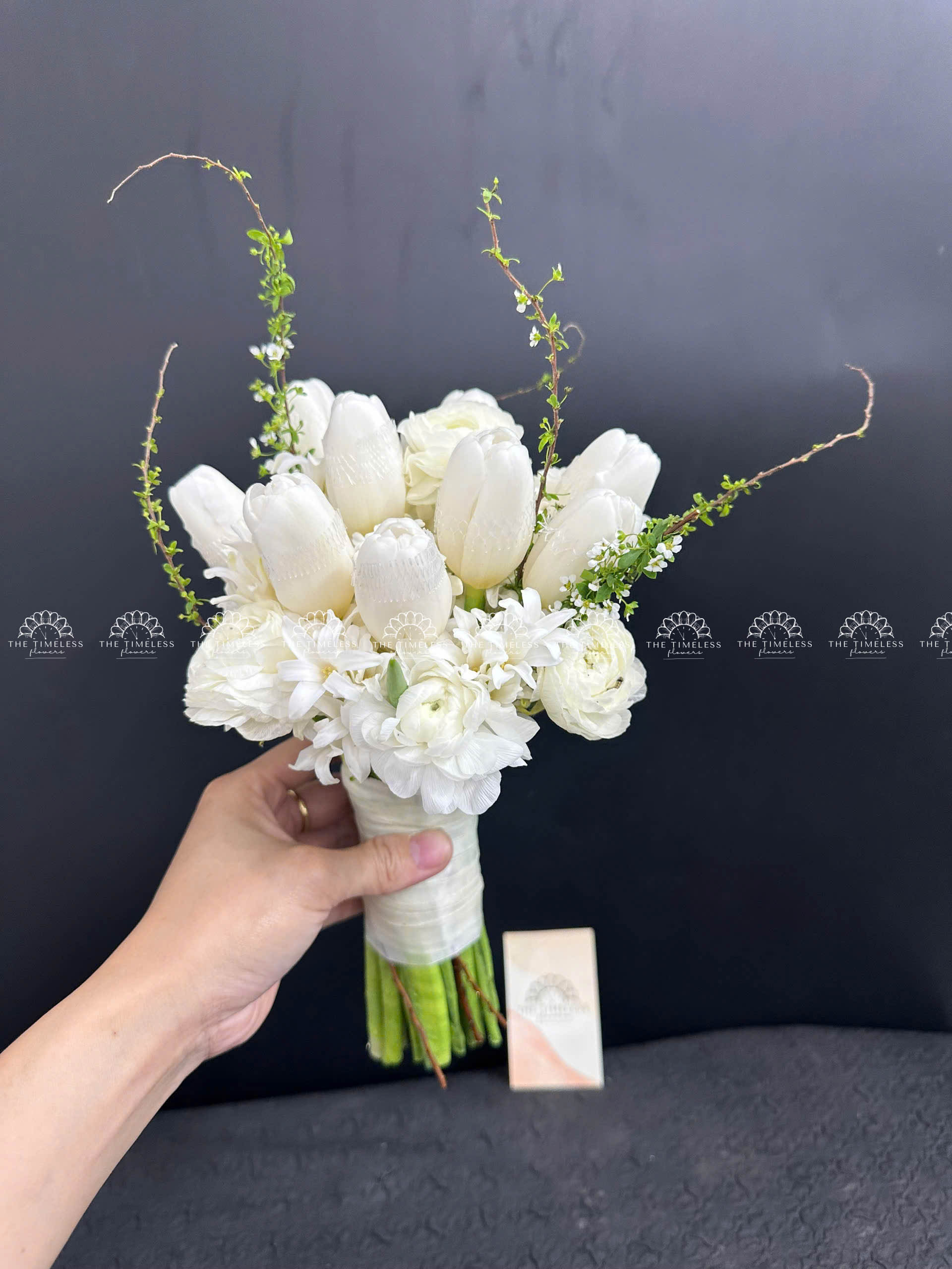 Hoa Cưới 9 Hoa Tulip Trắng mix Dạ Lan Hương A285