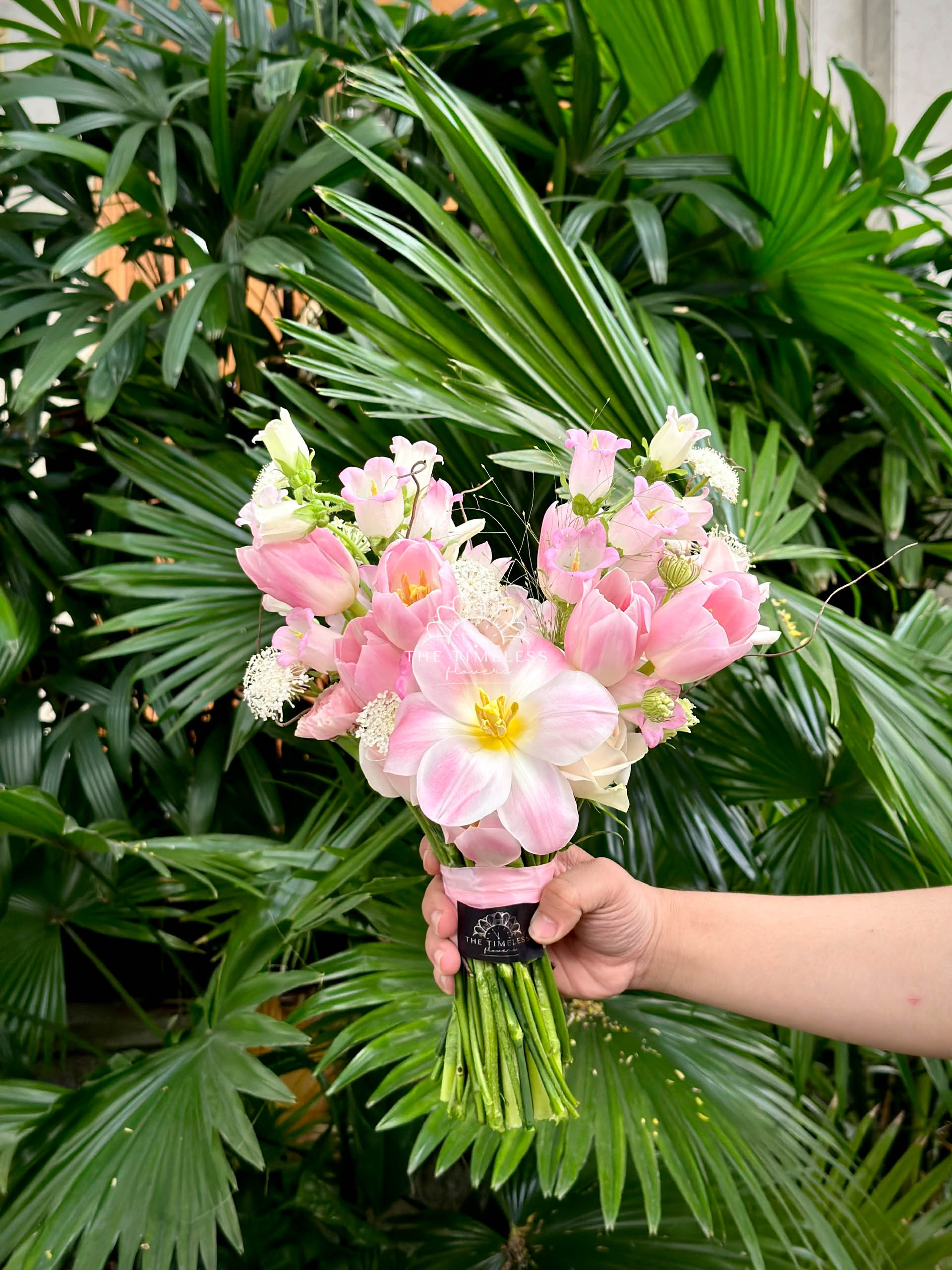 Hoa Cưới 9 Tulip Hồng mix hoa chuông A142