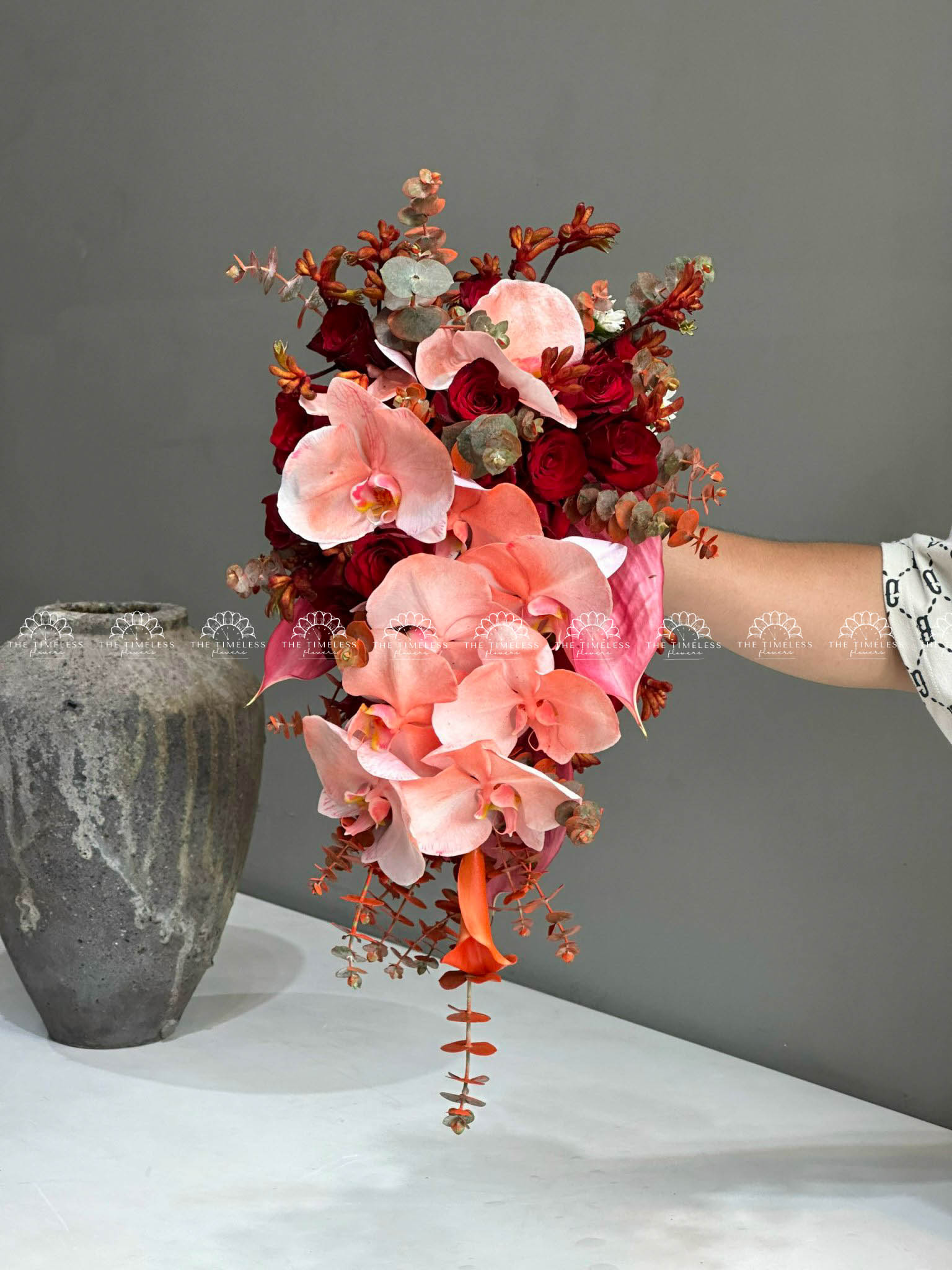 Hoa cưới cầm tay lan hồ điệp có thể biến tấu đa dạng với nhiều kiểu dáng khác nhau.