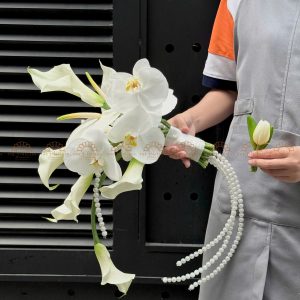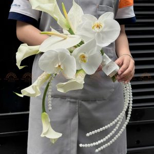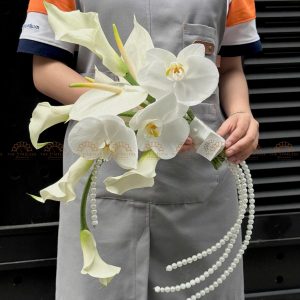 Vòng cung hoa cưới calla lily phối lan hồ điệp phối ngọc